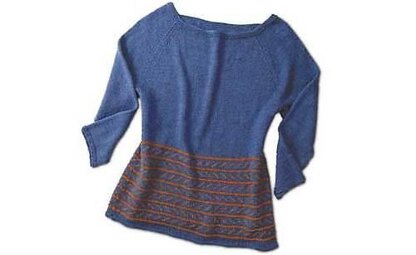 This raglan sweater, originally a Knit Picks exclusive, is knit in the round. Math is never so much fun as when it is applied practically..in the body of a sweater! Knit the ‘total’ signs and use duplicate stitch division signs to decorate your work. This pattern includes choices to suit your personal style. You may substitute yarns, use Fair Isle instead of duplicate stitch, or adjust the last line of contrasting color to emphasize the natural waist or create to the illusion of an empire waist under the bust.