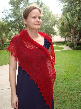 Finished Dimensions: Lace: 66”/167.6 cm wide and 31”/78.7 cm long at center points, after blocking Fingering: 54”/137.2 cm wide and 23”/58.4 cm long at center points, after blocking