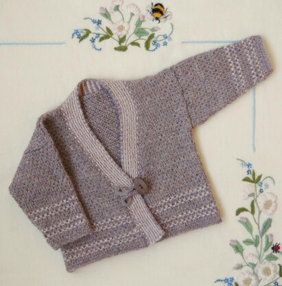 Enclose for 0 - 4 years of age is a wrap jacket that features woven stitch with a linen stitch front band. It is knitted bottom up in the flat on circular needles to allow stitches to be slid to the other end for single rows of contrast colour, avoiding breaking the yarn. It can be finished with a toggle or I-cord closure and single button. There are 7 instructional videos provided for those that love visual tutorials. The adult version (Enclose Pattern) is also available on Lovecafts.