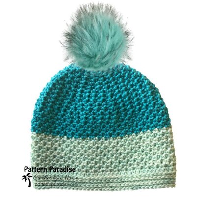 This hat has wonderful texture and I’ve provided instructions for a few different finishes, including two different bands, pompom finishes and ties. I love when you can take a basic hat and change a few things to make it look completely different. It looks great in one color or work it in multiple colors for a fun look.