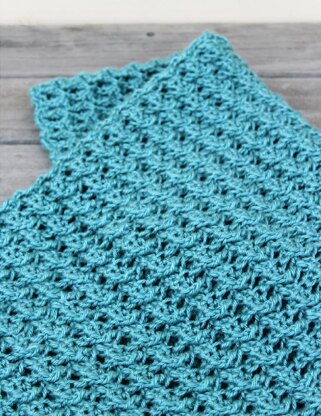 The Endless Sea Blanket uses a unqiue new stitch technique to create a beautifully textured, yet lightweight fabric with great drape! It is made to measure, so you may make to any dimensions, work to your own gauge and use yarn and hook of choice with excellent results. The pattern is an easy 1-row repeat, making the blanket reversible (identical on both sides).