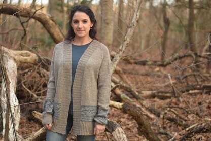 The cardigan is worked in one piece from the top down. Once the yoke is complete, sleeve stitches are put on waste yarn and the body is worked flat to the bottom hem. Sleeves are then worked in the round. Stitches for the front band are picked up and knit.