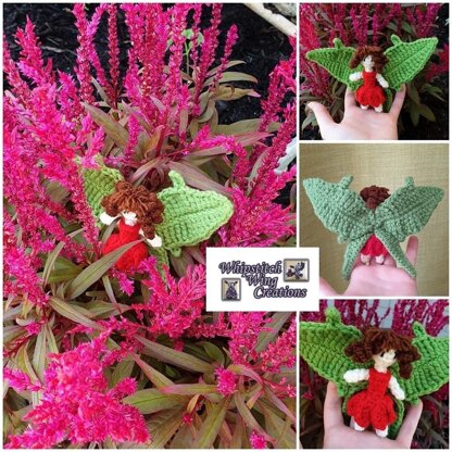 This magical little being loves nothing more than to play hide and seek amongst the garden flowers. Created with worsted weight yarn, she stands at 12cm tall and has a wing span of 16cm. Enlie the Garden Fairy is classed as an intermediate pattern due to the small pieces and joining techniques involved. As always, I have provided a number of examples from my testers to spark your imagination.