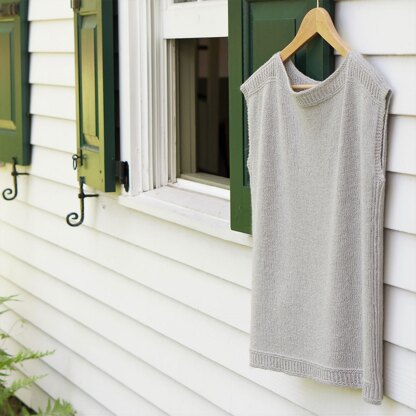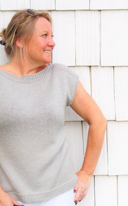 This seamless tee is knit from the bottom up, in the round. It commences with a twisted stitch rib hem, followed by flattering shaping increases to allow for ease of wear. Twisted rib faux side seams flow into the sleeve edging. It is then divided into two halves where the back and fronts are worked separately in the flat. There is a little short rowing for shoulder shaping and the finished twisted rib boat neck collar adds to the symmetry of this little elegant summer top.