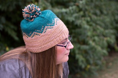The hat is a quick, easy knit and a great introduction to colorwork. The design adds a pop of interest to a simple hat.