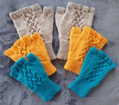Beautiful and practical: the cabled pattern on the back of these fingerless gloves provides a creative touch whilst keeping fingers free and hands warm.