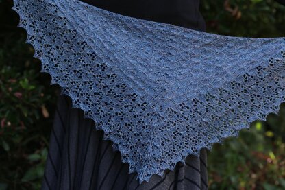 Eoan is a top-down triangular shawl that begins with small, textured hearts and evolves into flowing lace. Both parts of the shawl are textured with purl columns, leading into a beautifully textured lace edge based on a lace stitch created by Naomi Parkhurst.