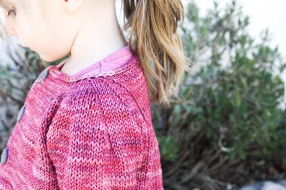 Eole for girls is a basic cardigan, knitted in one piece, from the top down. It is entirely seamless.