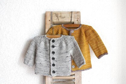 With it’s simple lines and it’s « windmill style » increases on the shoulders, this cardigan is the perfect balance between classic and modern, for a casual unisex look. A little i-cord border – that you can also work in a contrasting color - is picked up and knitted all along the garment for a neat edging.