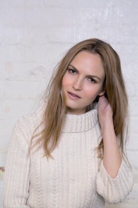 Elegant simple cable and texture sweater with wide neck and three quarter sleeves. Instructions include a small chart.