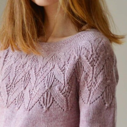 ERITY is a seamless sweater in top-down construction with an interesting lace pattern on the yoke, while the rest is worked in simple stockinette.