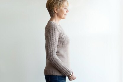 Ernestina – perfectly fun and fashionable for fall! This is an A-line pullover with delightful, dotted lace on its fitted upper bodice and slim, long sleeves. Its neckline is a crew trimmed with 2x2 ribbing that segues from the repeat of its bodice lace. This piece is worked in the round, from the bottom up, until the armholes where it splits and is worked flat, back and forth. Stitches are picked up around the neckline. Set-in sleeves are worked flat from the bottom up and seamed. Enjoy!
