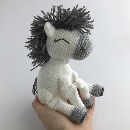 There is no specific gauge for this pattern, but please try to keep your tension tight. When using the same yarn and hook size, your horse should measure roughly 7 inches tall.
