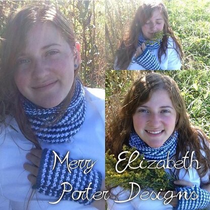 These gloves are part of a 2 piece set: Also available is Erudite Cowl (from Divergent) I used less than 1 skein of each color of Caron Simply Soft shade Ocean and White to complete the gloves AND the cowl. Gauge is not critical. Three sizes are included in the pdf: Small, Medium, and Large. Sewing needle is necessary for this project.