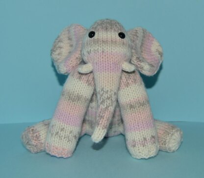 Materials needed to make Esie The Elephant: 3.25mm or 3 US or 10 UK single pointed knitting needles, 2 x 3.25mm or 3 US or 10 UK double pointed knitting needles, 50g or 1.77 oz Sirdar Snuggly Crofter Baby Fair Isle Effect Dk in shade 0190 (one ball), stuffing, and 8mm black safety eyes.