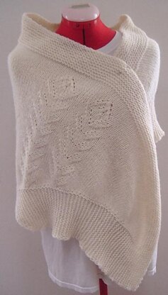 It is a one piece, bottom-up, symmetrical, fan-shaped shawl. There are two options to work increases at the two sides; either use knit front and back or yarn-overs. Any yarn and colour will be great for it. Gauge is unimportant.