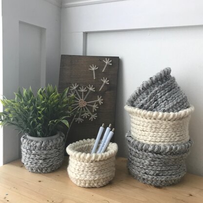 The basket is made using super bulky weight yarn but can be substituted easily for a different look and style.