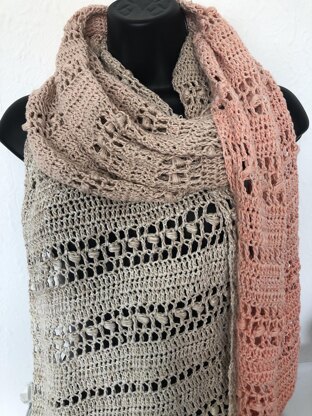 Peachy in colour, lightweight and rectangular in shape this wrap can be worn as a scarf, shawl or wrap and is perfect for a summer walk along the beach.