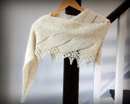 This stole or shawl is reminiscent of the wings of a swan. The lace pattern is knit side to side on 5mm needles using Fairy Lawn Alpaca. Any fingering weight yarn would work or even sport or sock weight. Stitches are then picked up along the top and the body of the shawl is knit in garter stitch and shaped using short rows. By changing the number of lace repeats, number of short rows and the number of stitches used in each short row, the pattern can be made into different lengths or varying depths. Two sizes are laid out in this pattern, but the pattern can be easily adapted and includes tips on how to do so.