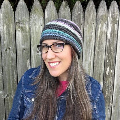 The Ethel Beanie is a fast knitting project that utilizes a solid color and self striping yarn to make a fun, unisex beanie.