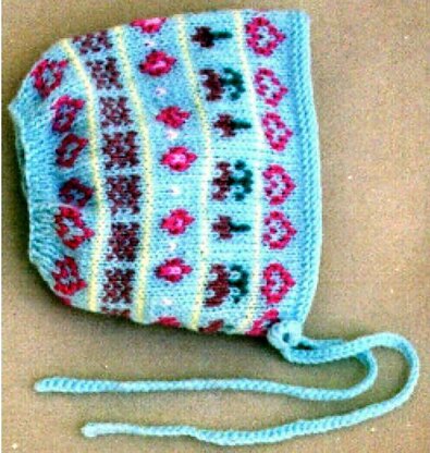 A so cute hat, that has easy shaping. You will follow the easy graph of pattern stitches, and then you are done! Very little else to do but add the ties. This is especially cute for girls, and you can use up scraps of yarn knitting it! Uses sport weight yarns, knitting needles, US # 4. This has a European look.