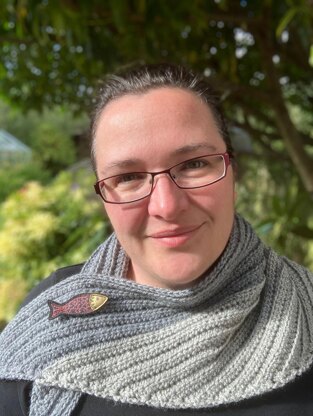 This scarf is a great stash-buster, use 100g of any wool or acrylic mix 4ply, DK or aran yarn in your stash! Choose to tie it at the neck, fix it with a shawl pin or add buttons to secure the ends. As the scarf is worked from the bottom tip up, the triangular shape is there from the very beginning. There is no danger of running out of yarn before you achieve the correct shape. Just keep working until you have no yarn left! If you have more than 100g of your chosen yarn, you can keep working for a bigger, warmer scarf.
