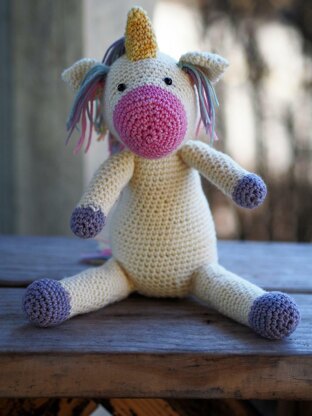 Eunice the Unicorn likes to ride her pure white pet unicorn, Angel, and gaze at rainbows and sunsets. We used naturally dyed yarns that are made with earth’s materials to produce an eco-friendly toy that will delight young and the young at heart.