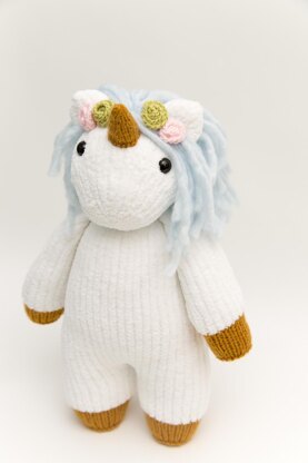 She is worked FLAT on 3.5 mm needles (2.5mm needles for the unicorn horn and flowers) and is seemed at the back. Some assembly is required. This is a pattern for people who prefer to knit flat pieces rather than in the round.