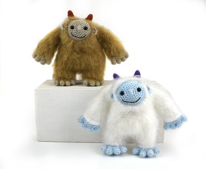 Eustace the Yeti and Boris the Bigfoot may be distant cousins but they are the closest of friends. Both are made from the same pattern but the color change gives them their uniqueness. Eustace lives in the Himalayas while Boris preferers the Appalachians. While it can be difficult for them to meet up in person due to their tolerance for very different natural climates they facetime on the internet every day so never miss any of each others important news!