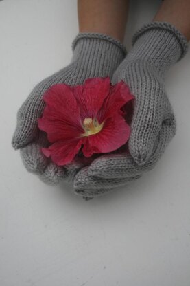 The gloves start knit flat at the cuff on straight needles, then change to being knit in the round on double-pointed needles. Stitches are increased into a thumb gusset for a comfortable fit.
