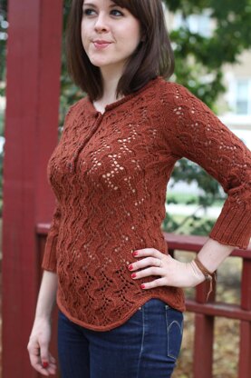 Like most girls I know, I wear flip-flops before it's warm enough and sweaters before it's cold enough, because I'm always antsy for the next season to start, even though we're not done with the current one. The Everett Henley is great for those not-quite-cold-enough-for-a-sweater-days if you layer it over a camisole, but it can easily take you into actual winter if you layer it over a button down and add some killer boots. The lace pattern is one of my all-time favorites, and top-down construction means that it's totally seamless. The curved hem, applied i-cord bind-off, and three-quarter sleeves add structural interest and detail.