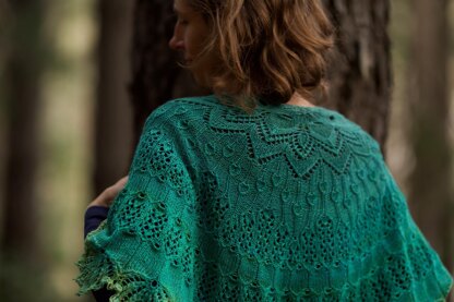 A semicircular lace shawl on the theme of change as a positive necessity, with flowing and evolving layers of lace and just enough texture to be interesting.