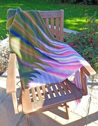 This shawl is worked in garter stitch using the German Double Stitch method of working short rows. It is worked in two colours but only one colour is worked at a time. It can be worked in any weight of yarn and the number of sections worked depends on the amount of yarn you have and the finished size you want. The shawls in the images have been worked in Schoppel Crazy Zauberball and Stylecraft Batik Swirl.