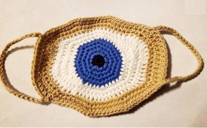 Eyes forward! Make a funny eyeball face mask with this crochet pattern using cotton yarn. Instructions are included for cloth lining which is open on one side to allow insertion of filter. Mask measures approximately 5" tall by 7" wide and has ear straps on each side.
