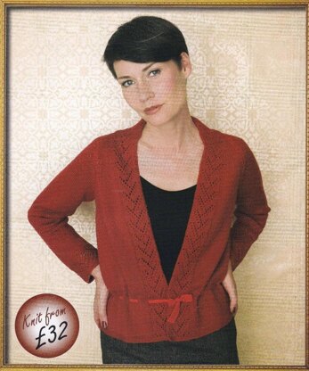 This is a pattern for Eyelet Twig Cardigan, originally published in Knitting magazine. It is a simple shape in stocking stitch with eyelet twig panels on the front borders and cuffs. It fastens with a small button and velvet ribbon. Photo Laurel Guilfoyle for Knitting magazine.