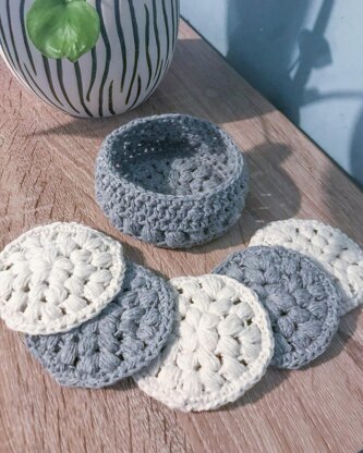 Crochet a beautiful, eco-friendly, reusable, set of Face Scrubbies with Basket for easy storage, a simple and fun pattern to make. This has been designed for stash-busting, using Cotton Yarn. Pattern includes written instructions and reference photos.
