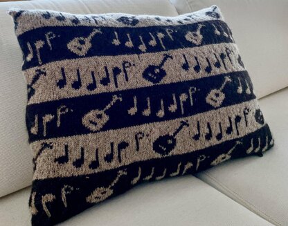 Fado, a soulfoul music genre from Portugal, is unique. Personally, I especially like the instrumental accompaniement of the songs. A Portuguese guitar has twice as many strings as the common guitar, contributing to the wonderfully graceful flow of different melodies, with sounds glistening like water droplets in the sun.I incorporate the first few notes of the famous song “Coimbra é uma liçao” as well as a stylised depiction of the Portuguese guitar into my project. I am knitting both designs using a slightly shimmering yarn with some metallic part and in warm wood brown and gold-beige.
