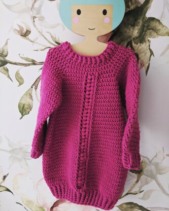 Crochet Jumper Dress with harvest stitch detail at Centre Front, inspired by my daughter who asked for a dress like Mummy's so created her very own.
