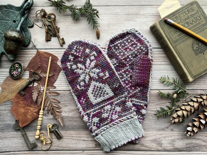Fair Isle colorwork crochet creates a knit look. The mittens are entirely crocheted, except the red/cream example. The pattern includes three crochet cuff options as well as one knitted cuff option, because it isn't confusing enough that the fair isle crochet looks knitted. :P