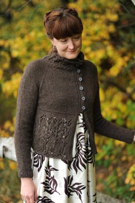 Fairwind is a lightweight asymmetric cardigan knit in Bijou Basin's wonderfully soft and strong undyed Himalayan Trail yarn. It is knit from the neck down in one piece with the stitches for the collar picked up at the end.