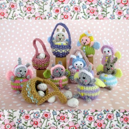 KNITTING PATTERN contains instructions for Fairy Bunnies and a tiny basket to keep one in. Quick to make they only require very small amounts of yarn.