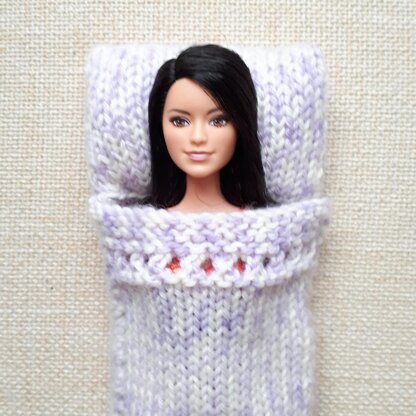 This is a hand knit PATTERN for a sleeping bag for Doll.