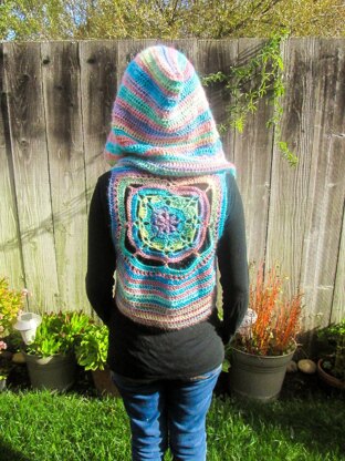 Intermediate: Ch, sc, dc, tr, dc cluster, spike sc, increasing, decreasing, sl st. Written instructions for magic ring, cluster stitches, and spike stitch. Includes some photos for working on the hood.