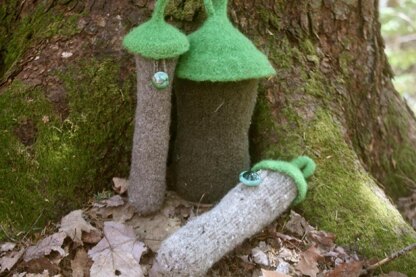 Fairy House in the Woods is a felted bag with zip and button closure options and two sizes- perfect for markers, pencils, double pointed needles or special treasures.