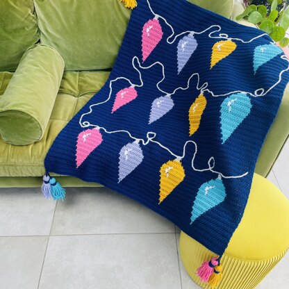 The Fairy Lights Blanket is a super fun winter make which will bring a touch of Christmas magic to your home. The pattern is a great introduction to tapestry crochet, instructions for which are included. Surface crochet is used to create the cord joining the lights once the main body of the blanket is complete.