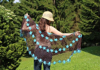 This lacy shawl is a perfect accessory for the summer. Wear it on your shoulder at the beach or around your neck during the night, it will brighten you! The pattern is partially charted. The charts are made with crocharts.com. More info about the pattern at http://www.ravelry.com/patterns/library/fairy-violet-shawl