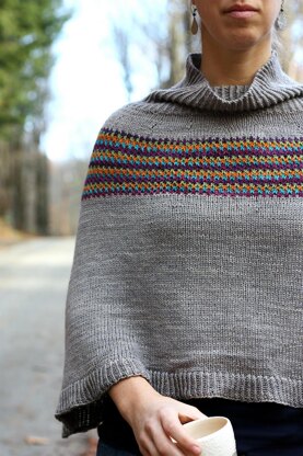 There are magical techniques hidden in the construction of this garment, from miraculous 1 strand colorwork (no fumbling with 2 strands of yarn!) to a mystical (yet so simple to do) way to hide all of those colorwork ends without needing to weave them all in! This design will delight not only the new knitter looking to dip their feet into new technique, but also the experienced knitter who finds themselves thinking, “There has to be a better way!” The final garment will work its last charm when you wear it. Everyone around you will be enchanted by your stylish poncho and will shower you with compliments!Yarn 1 Wonderland Yarns Mad Hatter Mini Skein Pack (Pictured in “Dark Rainbow Collection #53) 2 (2, 3, 3, 3)(3, 4, 4, 4) skeins of Wonderland Yarns Mad Hatter (Pictured in “Gravel-Walk #62”)