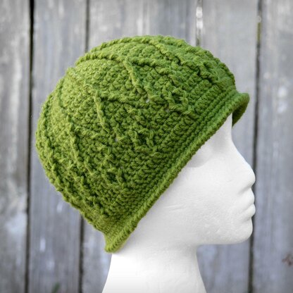 This is a crochet pattern for a beanie hat that draws interest in the Front-post stitches that create a fall leaf pattern. It features a simple band and would look great made in almost any solid color. Perfectly suitable for boys, girls, men, and women!