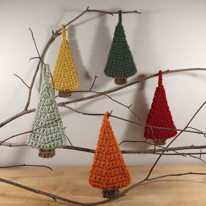 As pictured, using worsted weight yarn and a 5.00mm hook, the tree measures 6" high and 3" across the base.
