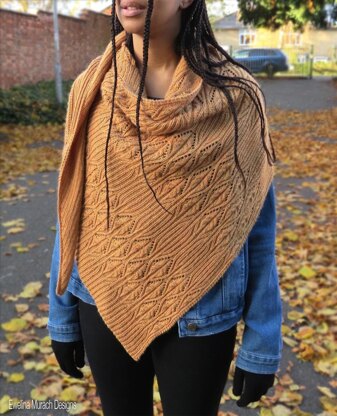 Fall Twists is worked sideways and shaped into an elongated triangle. Alternating stripes of squishy rib and cable pattern give the shawl an interesting texture on both sides − the shawl is reversible. The pattern has instructions for two yarn weights: fingering (size 1) and DK (size 2).